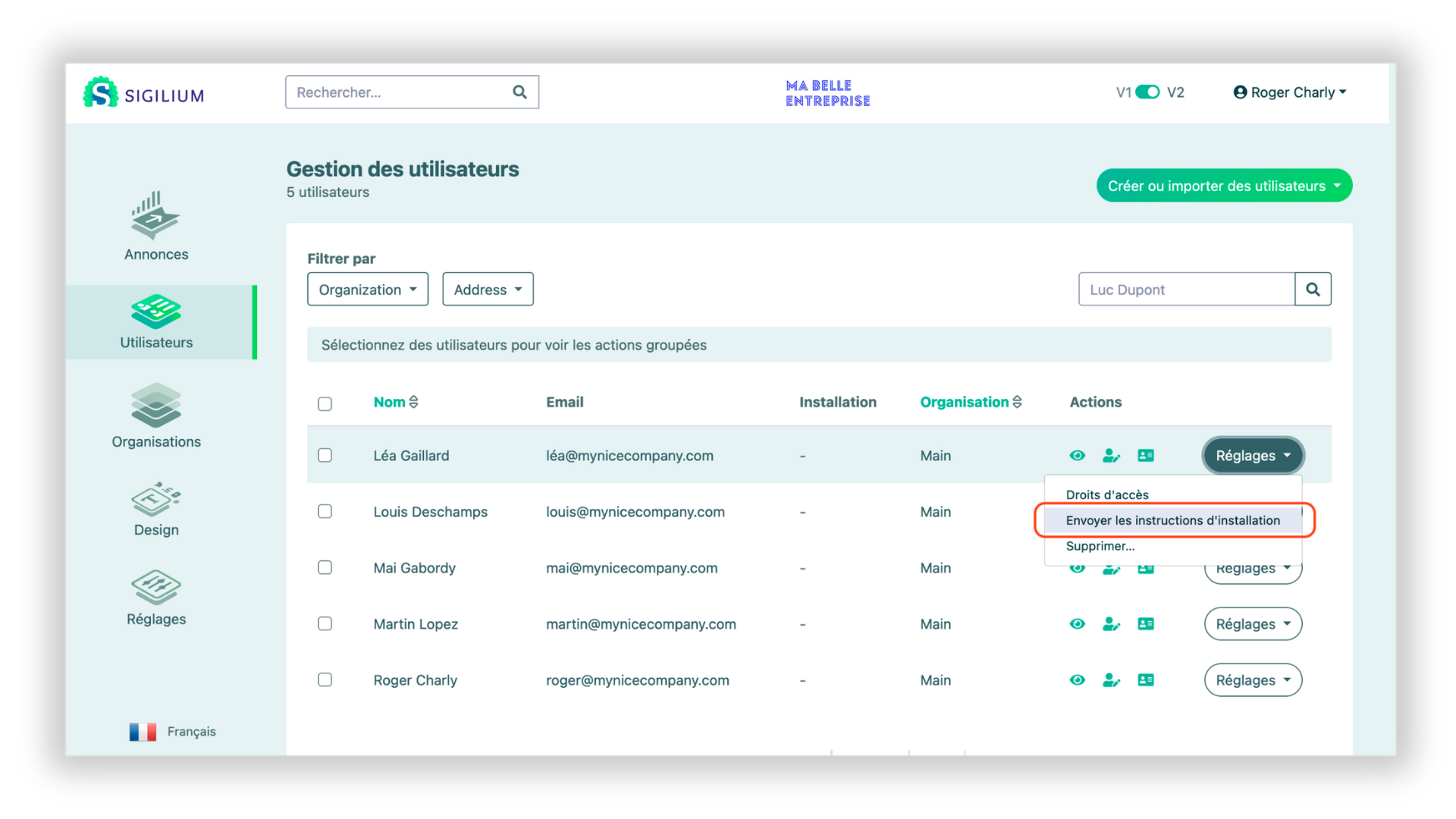 2 - At the top of the users list, click on Select an grouped action > Send the installation instructions