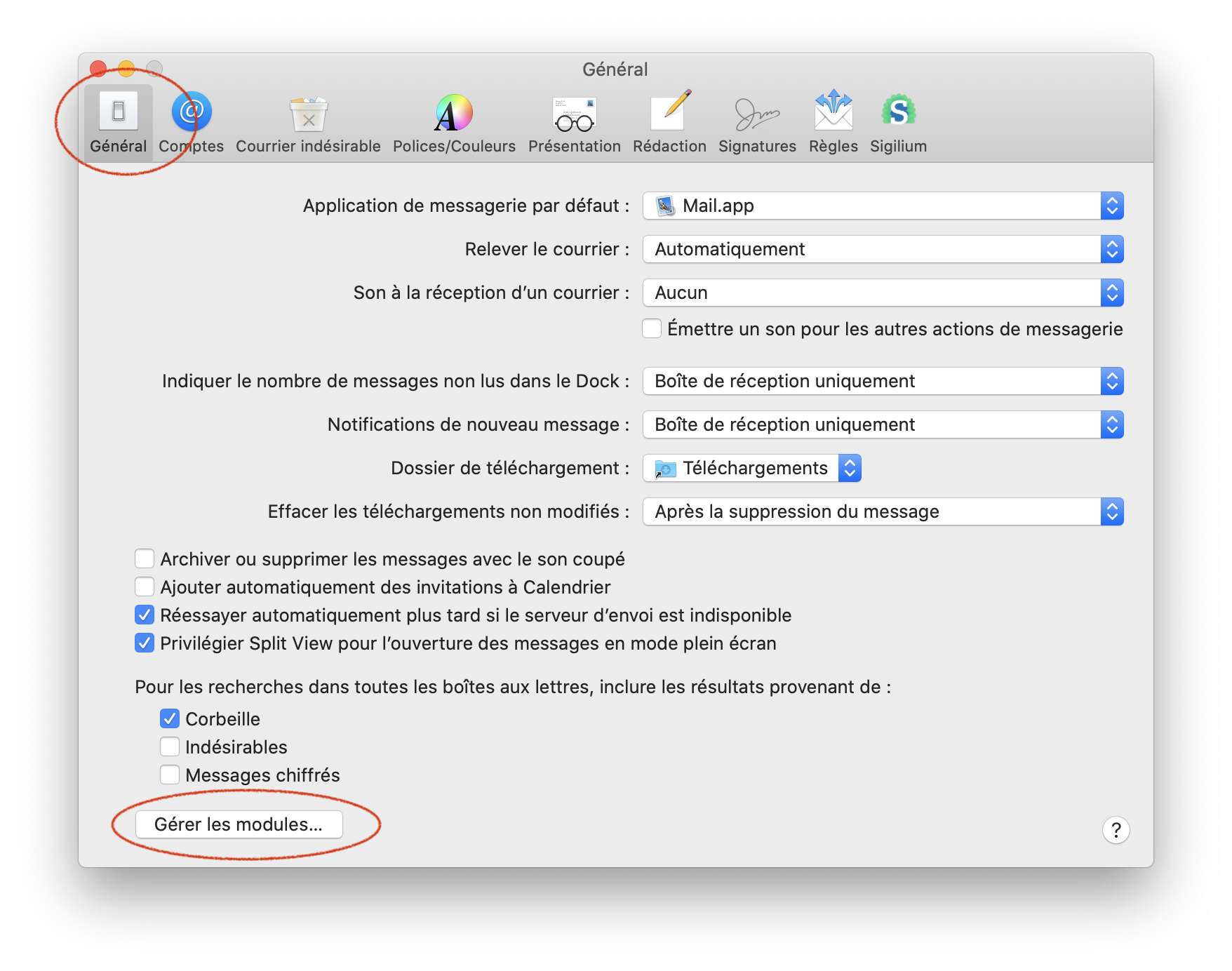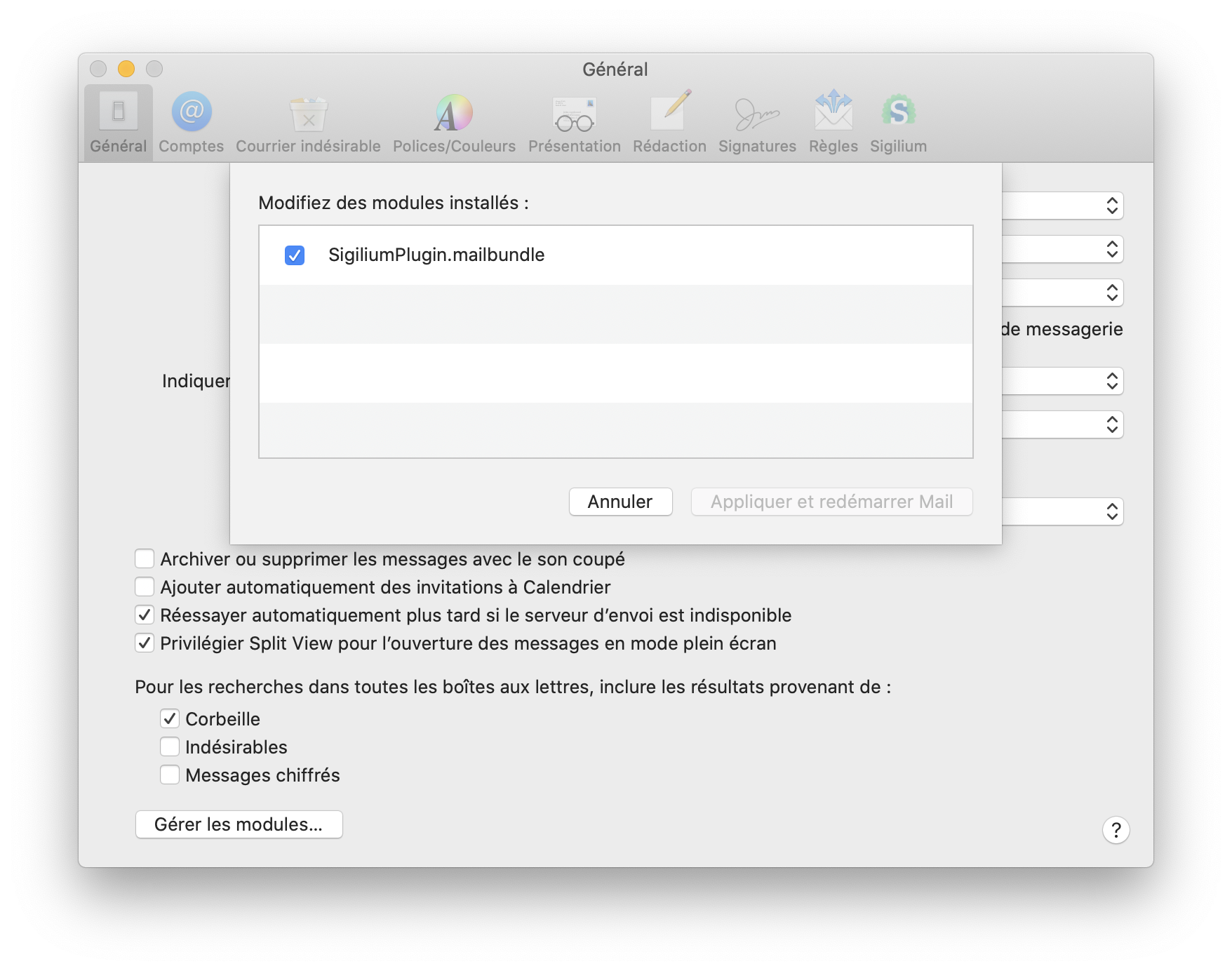 Si vous souhaitez désinstaller Sigilium sur mac et que vous utilisez Mail, voici la marche à suivre :