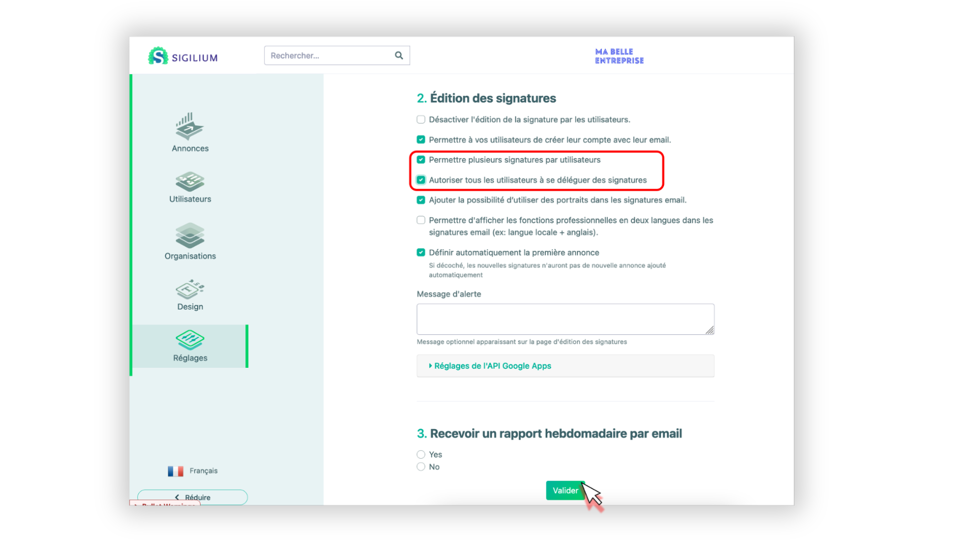 En tant qu'admin, connectez-vous à votre Tableau de bord sur Sigilium, et dans les Réglages, cochez ces deux options :