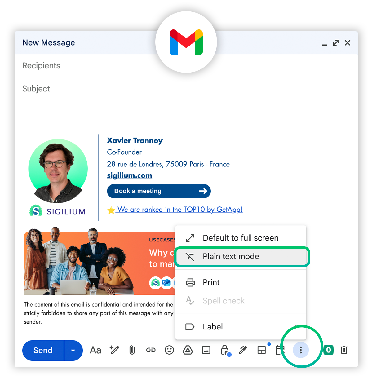 If your signature does not appear correctly in Gmail, it may be because the message you are writing is in text format.