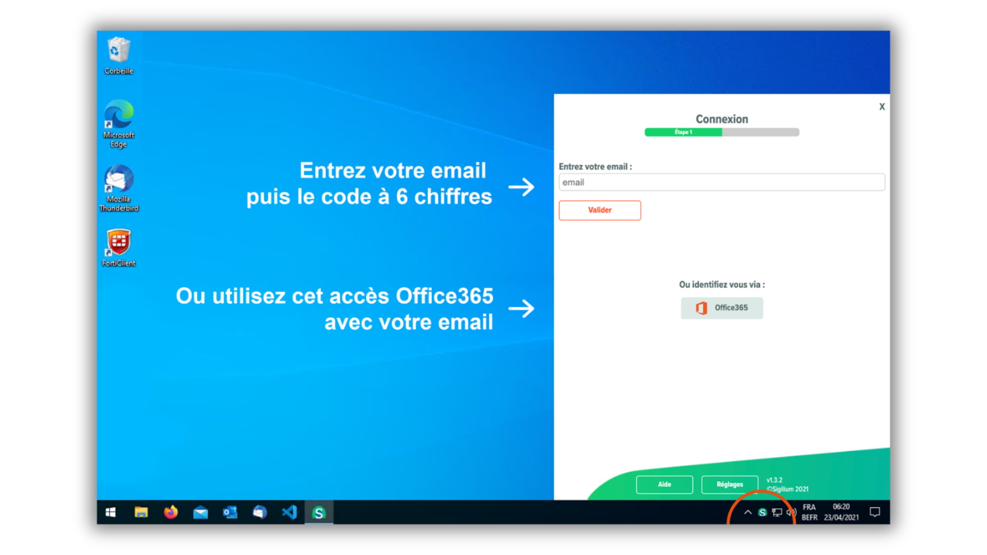 You can now enter the authentification 6 digit code received by email and confirm.