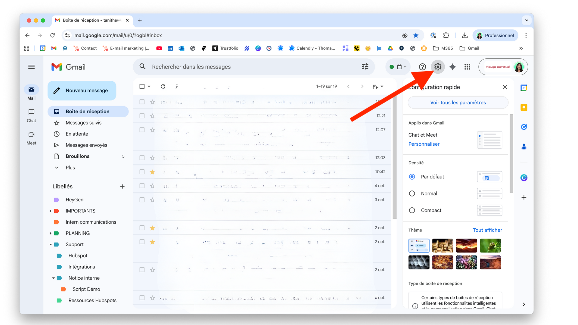 The email signature displayed by default in replies and forwarded emails is defined in the Gmail settings.