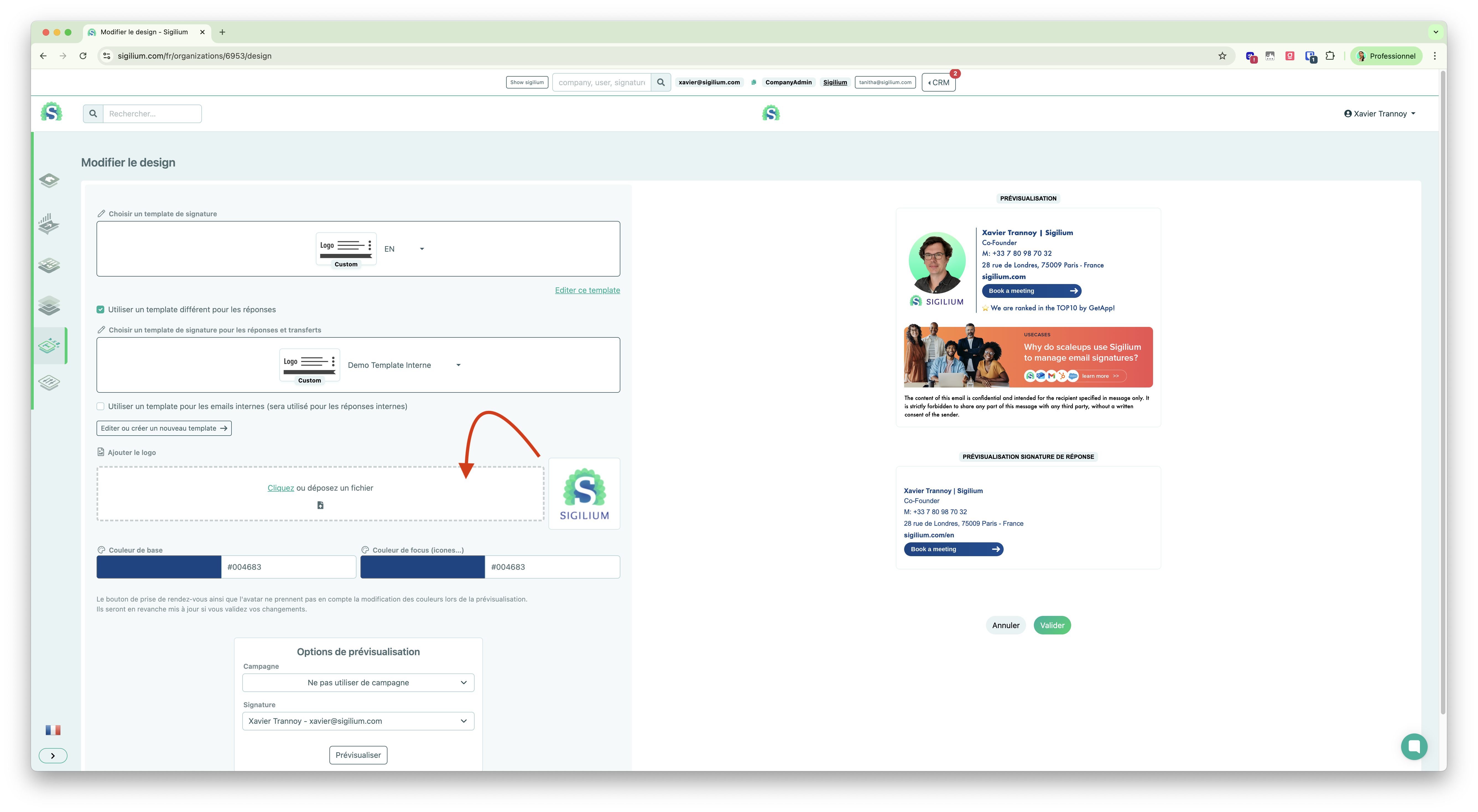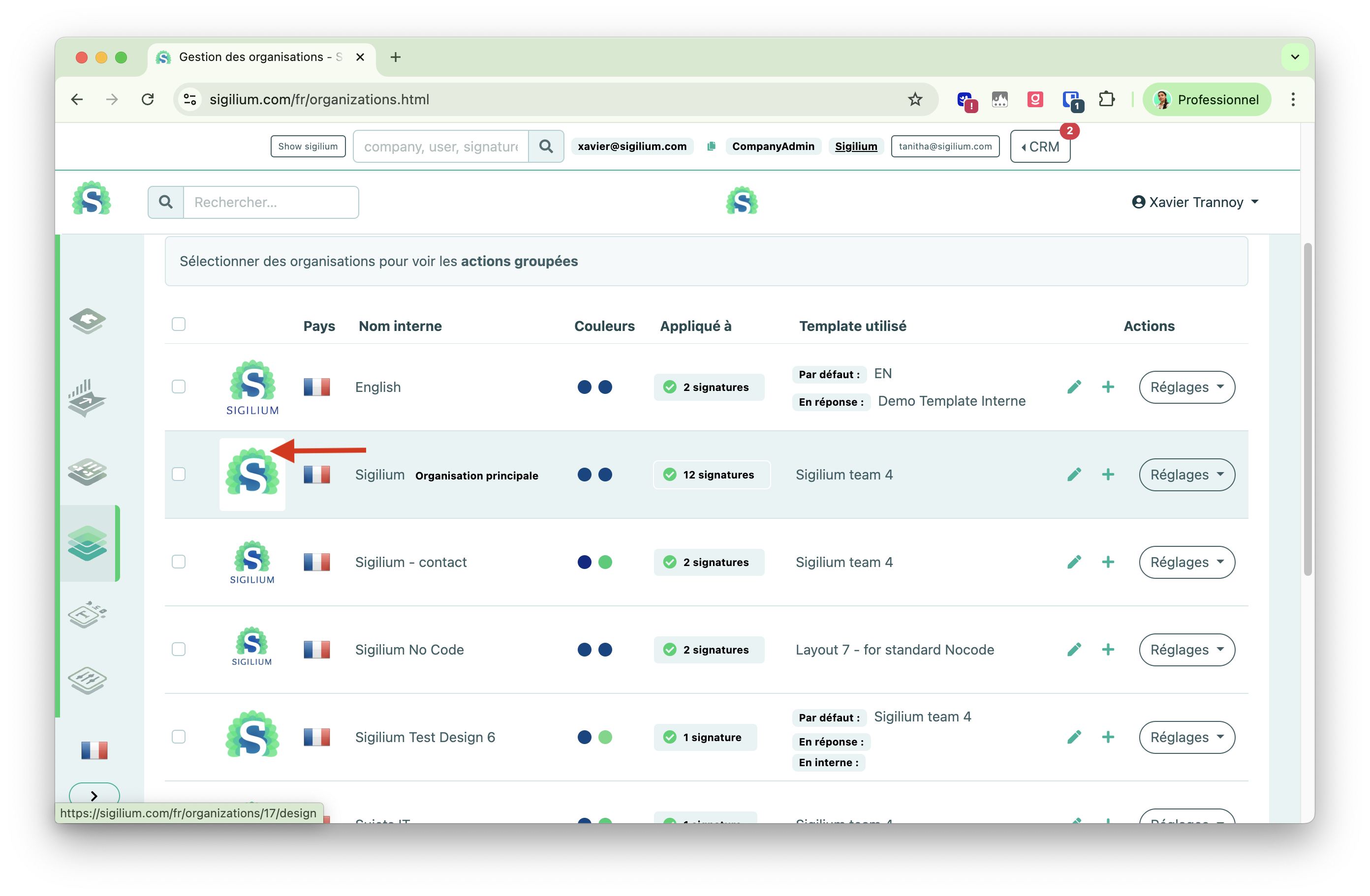 In the menu Organizations > Click on the logo