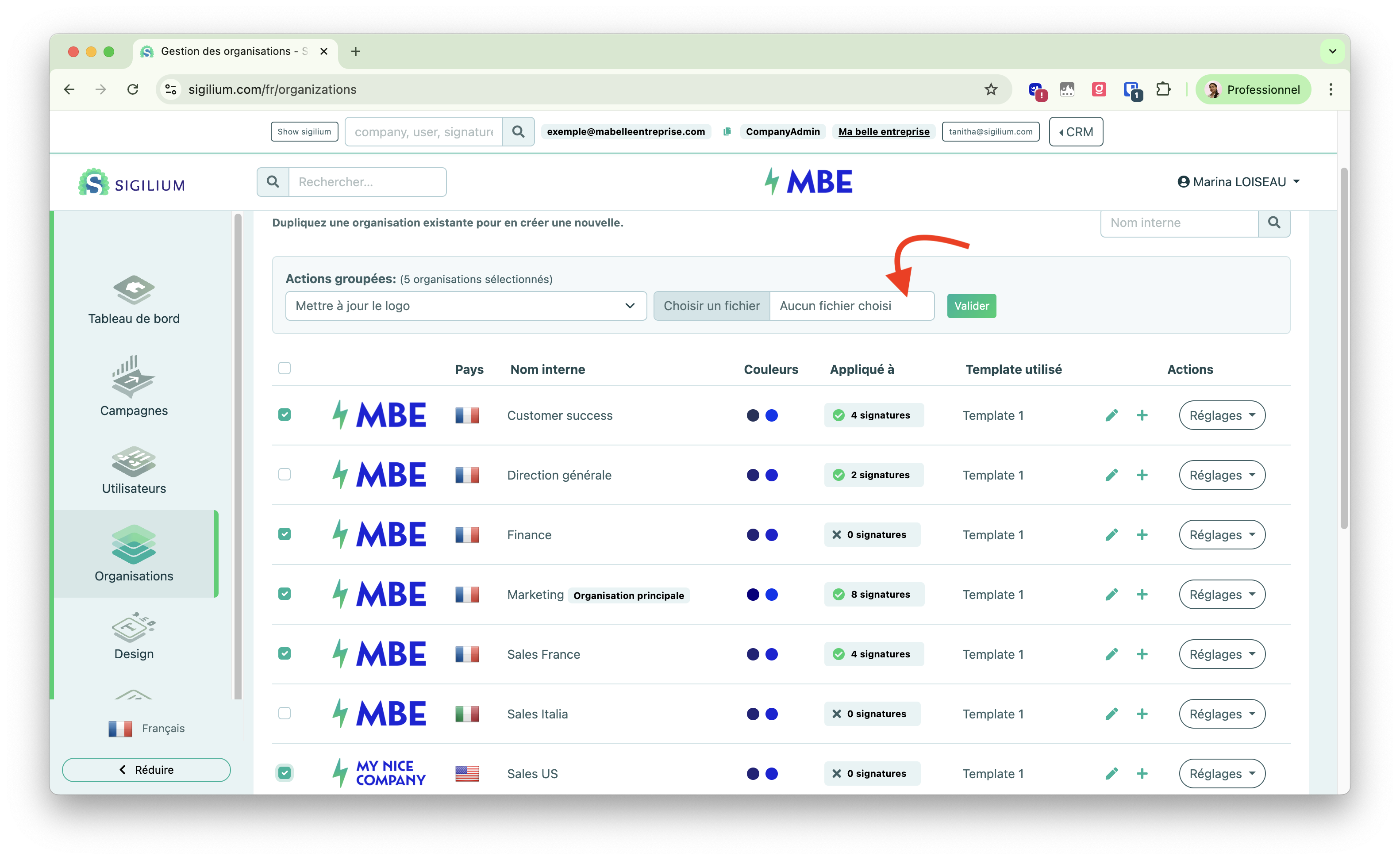 You can also update the logo for several organisation at once in bulk :