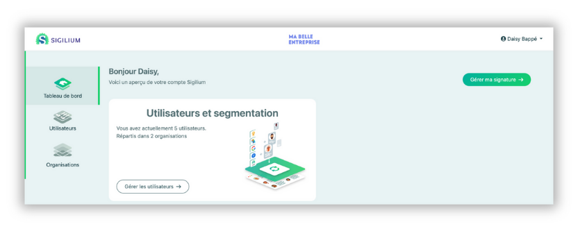 → Accès à l’ensemble des “Utilisateurs” et des “Organisations” liés à l’entreprise.