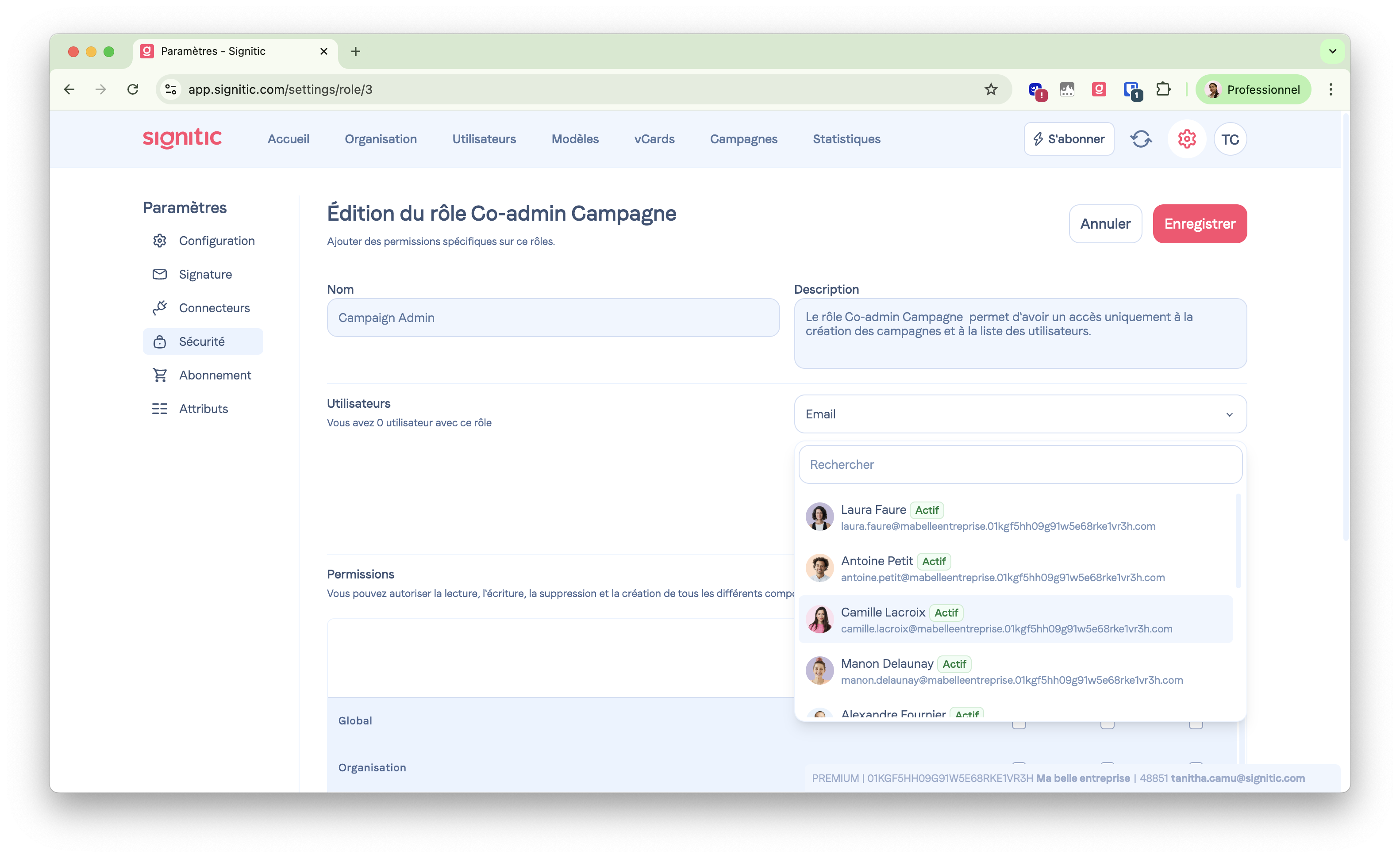 Vous y retrouverez des rôles prédéfinis pour déléguer la gestion des signatures email de façon sécurisée.