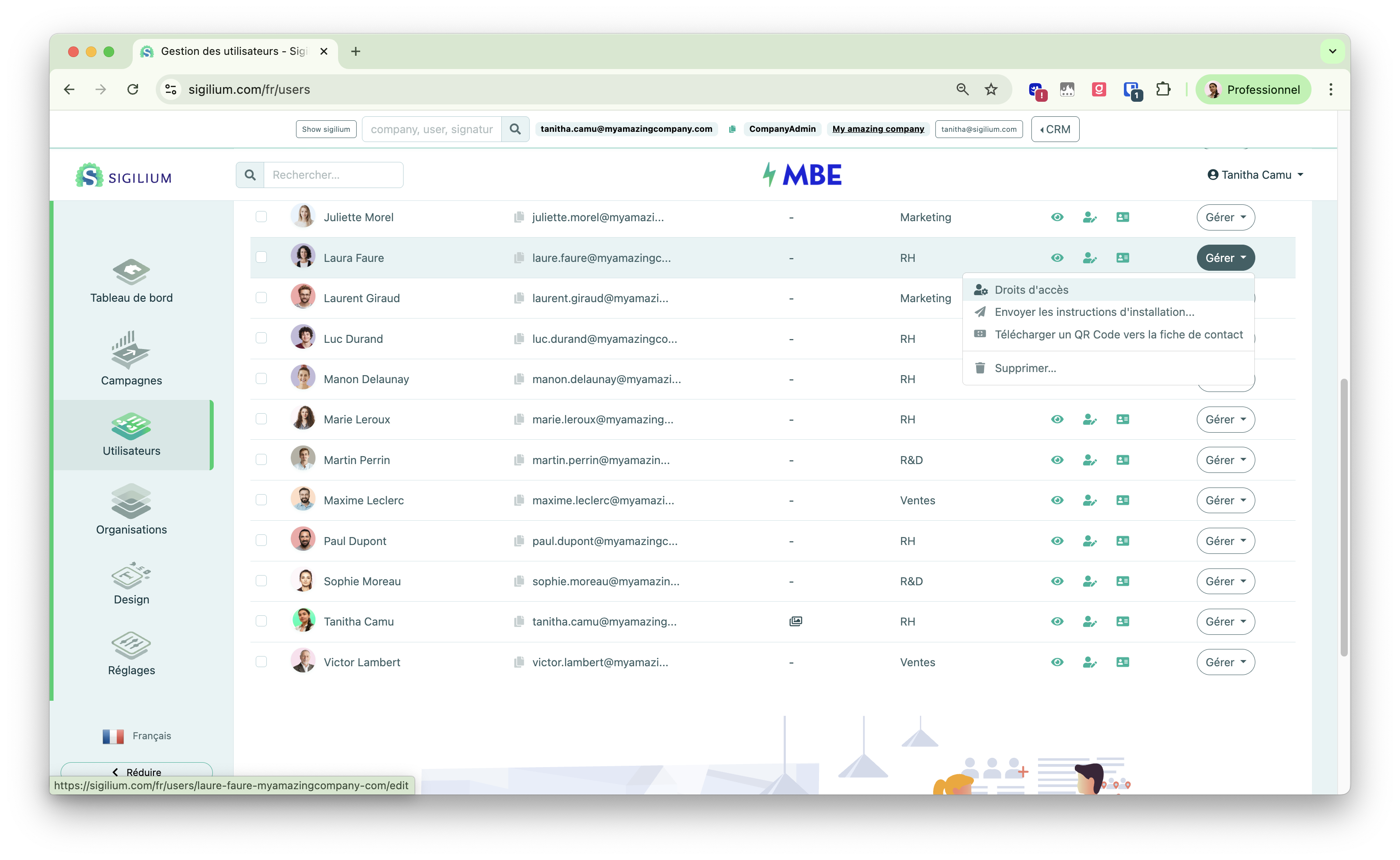 Pour rappel, sur Sigilium, les droits d’accès étaient gérés individuellement depuis l’onglet Utilisateurs.