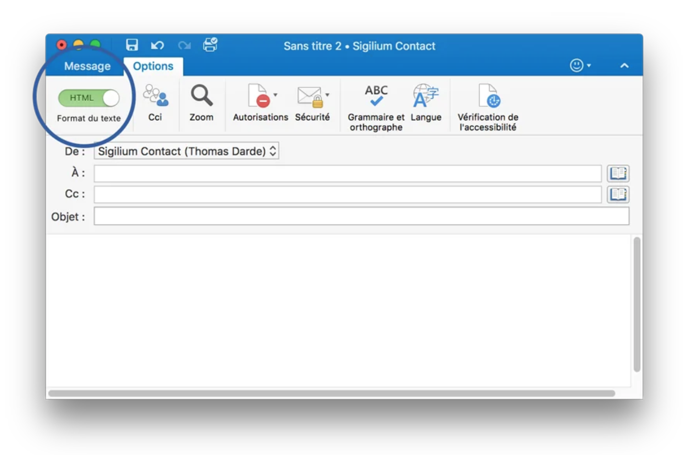 Voici les 2 étapes vous permettant d'avoir votre signature HTML dans vos réponses à message provenant d'un interlocuteur ayant utilisé du texte but :