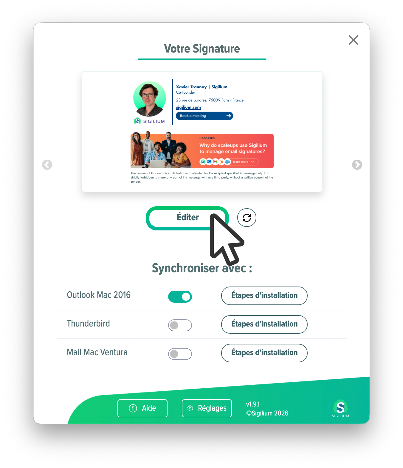 Voici plusieurs manières de vous connecter à votre espace Sigilium, pour éditer les coordonnées de votre signature email.